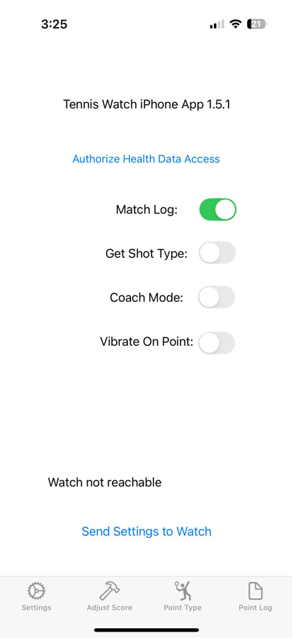 When not in ‘Coach Mode’ setting the ‘Get Shot Type’ switch on will prompt the watch to ask the wearer to select a point type from the point type table so it can be recorded in the match log and reviewed later. When in ‘Coach Mode’, the holder of the phone makes that entry.