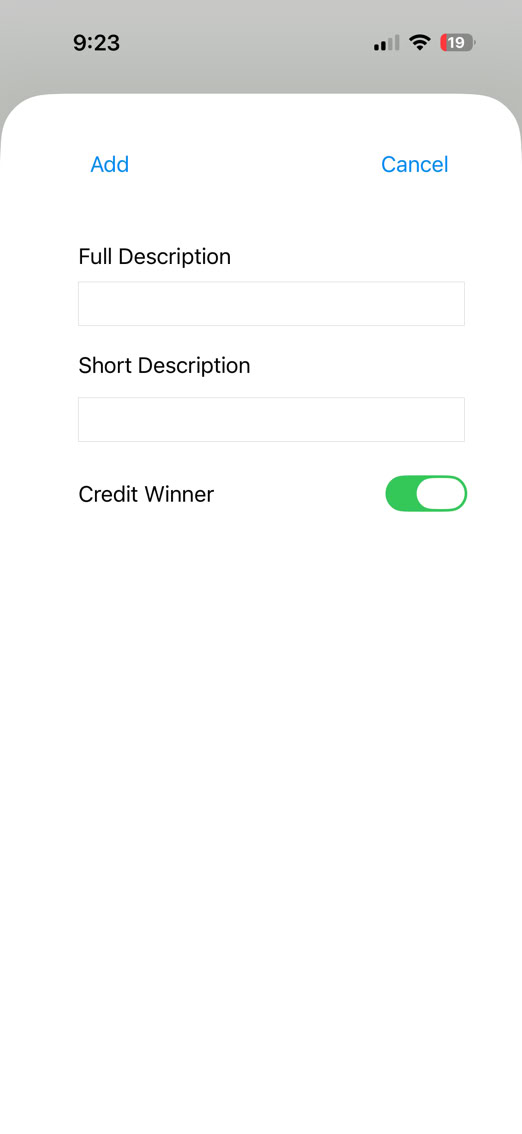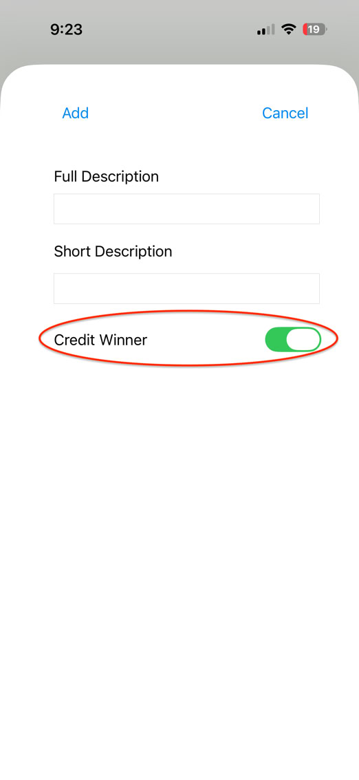 The first part of the change starts on the iPhone part of the app. A new field has been added into the entry. The ‘Credit Winner’ setting tells the app if the point is credited to the stats of winner of the point or the stats of the loser of the point.