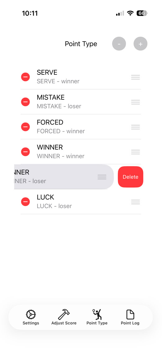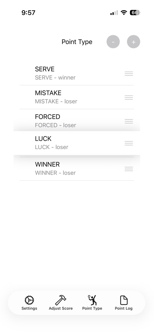 However, this is not the end all and be all of setups. The app allows you to set up any point outcomes you like and pick one at the end of each point. This can also be used in coach mode so if a coach or other person has the phone which is paired with the watch, THAT person can qualify the point.